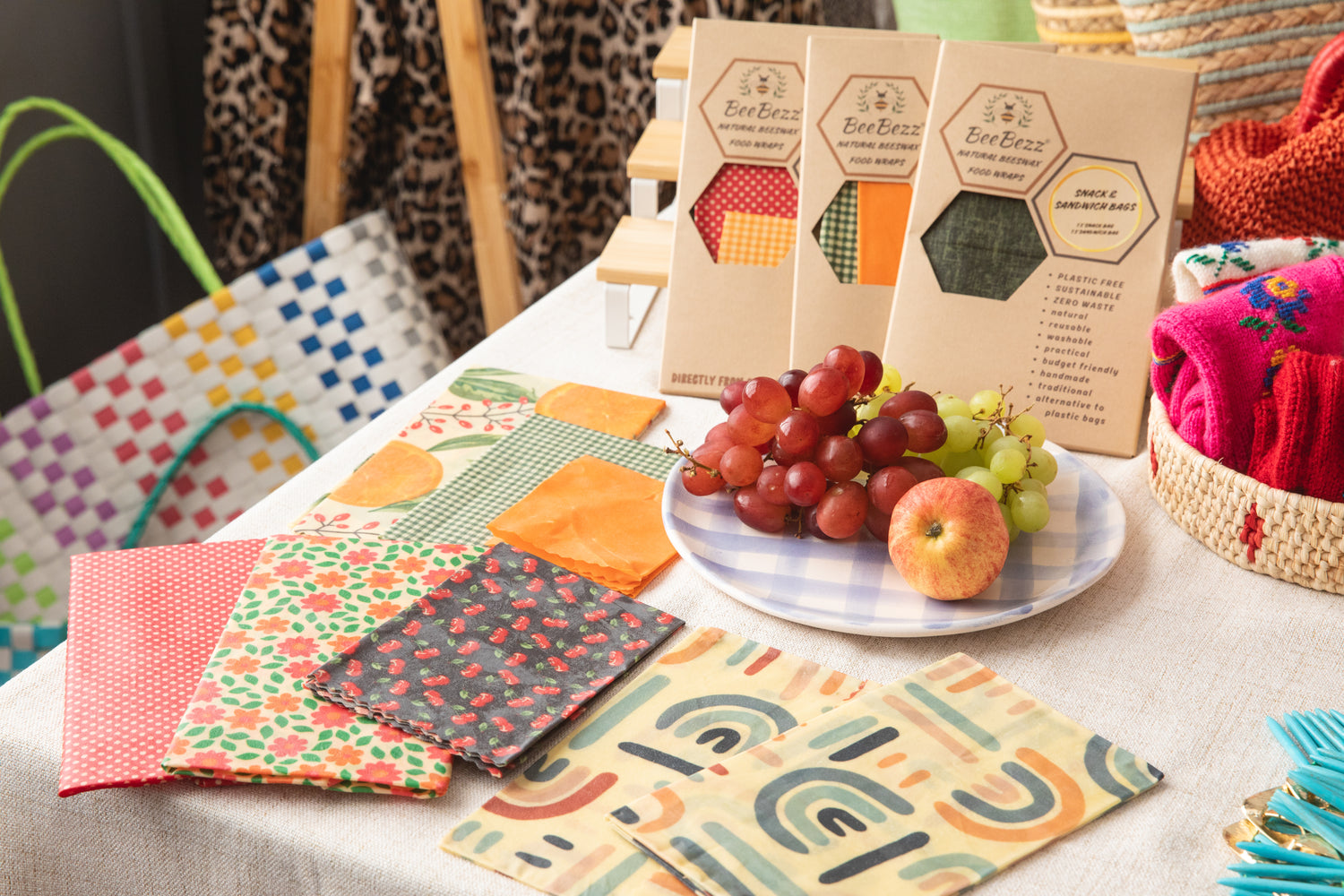Beebezz is a collection of reusable beeswax food wraps. Our wraps are a natural, sustainable, and beautiful alternative to plastic wrap, perfect for keeping your food fresh and reducing waste. Made with 100% cotton fabric and coated with beeswax from our own hives, Beebezz wraps are breathable, versatile, and easy to use.